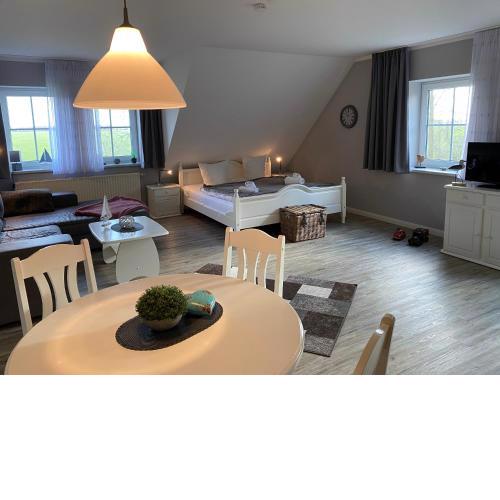 Unterkunft (Ferienwohnung) Ferienwohnung Land-Idylle – bis 6 Personen. Dieses Apartment liegt in Puddemin, 22 km von Binz und 17 km von Stralsund entfernt. Die Küchenzeile ist mit einer Mikrowelle ausgestattet. Unterkunft Ferienwohnung Land-Idylle – bis 6 Personen befindet sich in der Stadt Puddemin (Deutschland - Rügen).